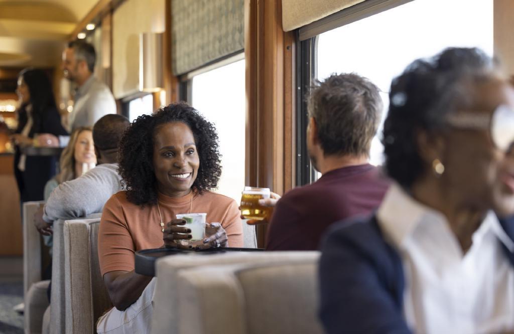Stretch your legs and your viewing angles in our bi-level glass-dome coaches. Sink into your spacious seat on the upper level and enjoy meals in the lower-level dining area.